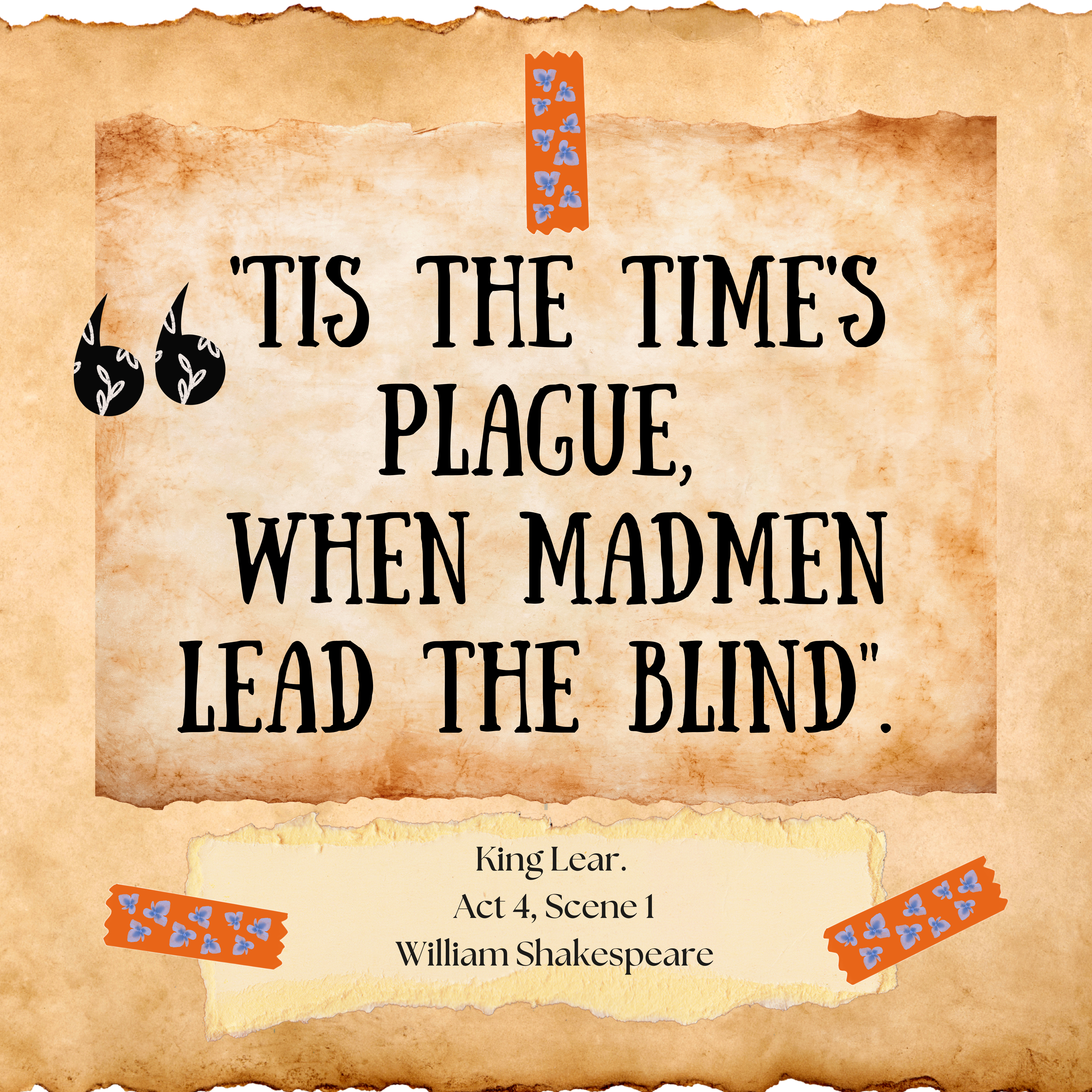 and here I am – feeling as if we are living in a world reminiscent of what Will of the Shakespeares described.